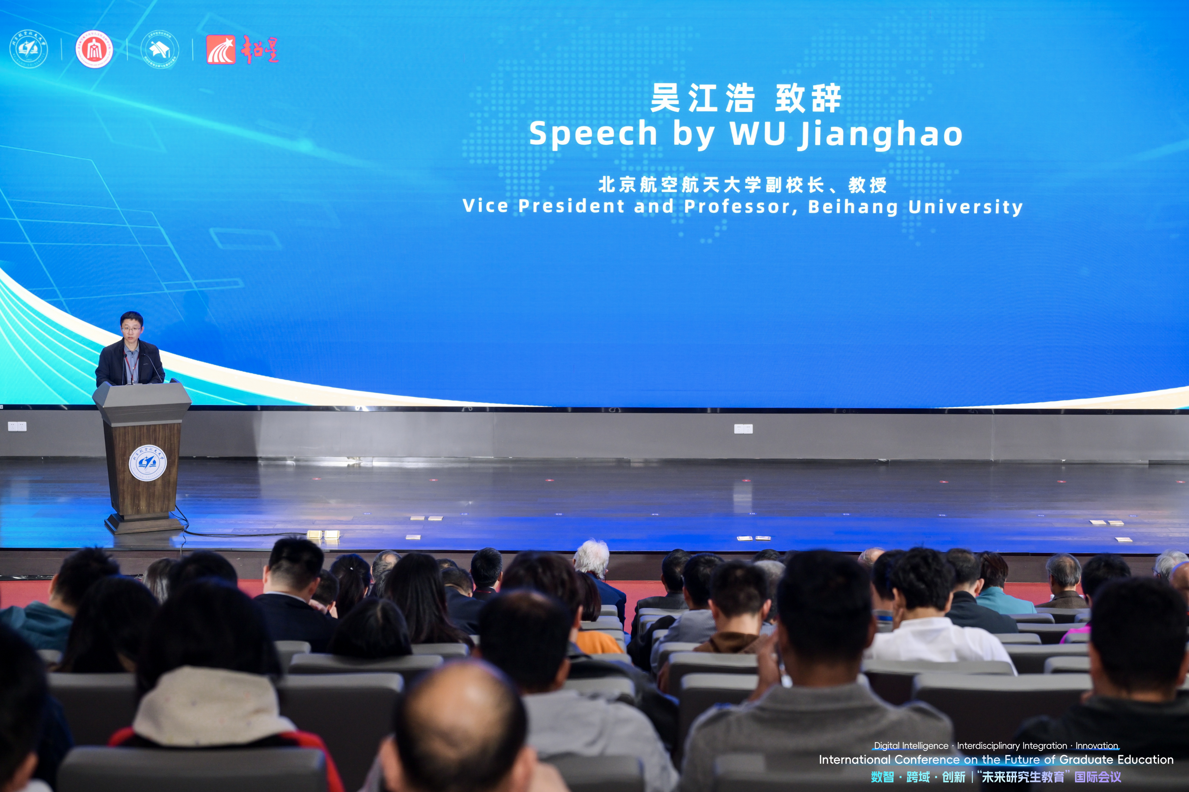 On behalf of Beihang University, Vice President Wu Jianghao welcomed the guests and shared the university's achievements in graduate education reform. Addressing the opportunities and challenges of the digital era, he outlined three priorities for graduate education: first, leveraging AI as a catalyst to break down disciplinary barriers and transform graduate education from knowledge transmission to capacity building; second, fostering interdisciplinarity and international collaboration to build a global community integrating science and education, addressing both national strategies and global challenges; third, promoting innovation by balancing technical skills with foundational principles to create an efficient, intelligent, and human-centered educational ecosystem.