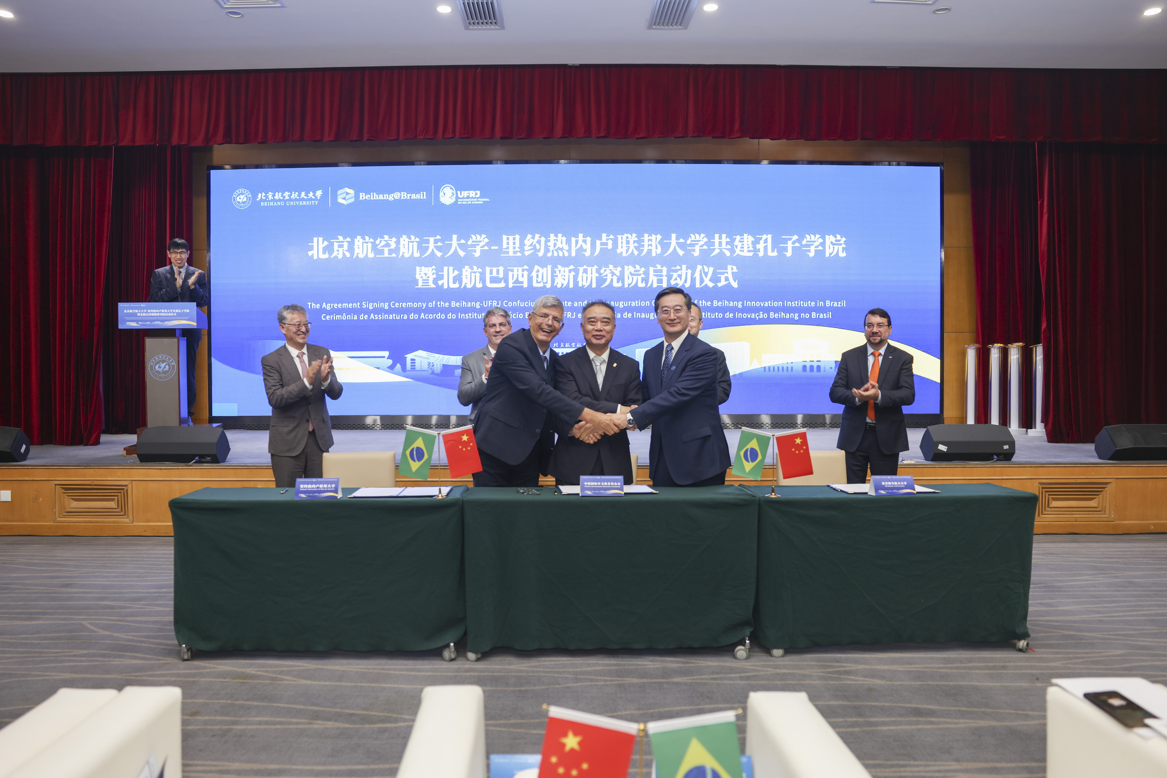 On May 12, Beihang University and the Universidade Federal do Rio de Janeiro (UFRJ) jointly inaugurated the Confucius Institute and launched the Beihang Innovation Institute in Brazil at a ceremony held at the Ruxin Conference Center of Beihang University. The event also marked the official unveiling of the Beihang Brazil Center.