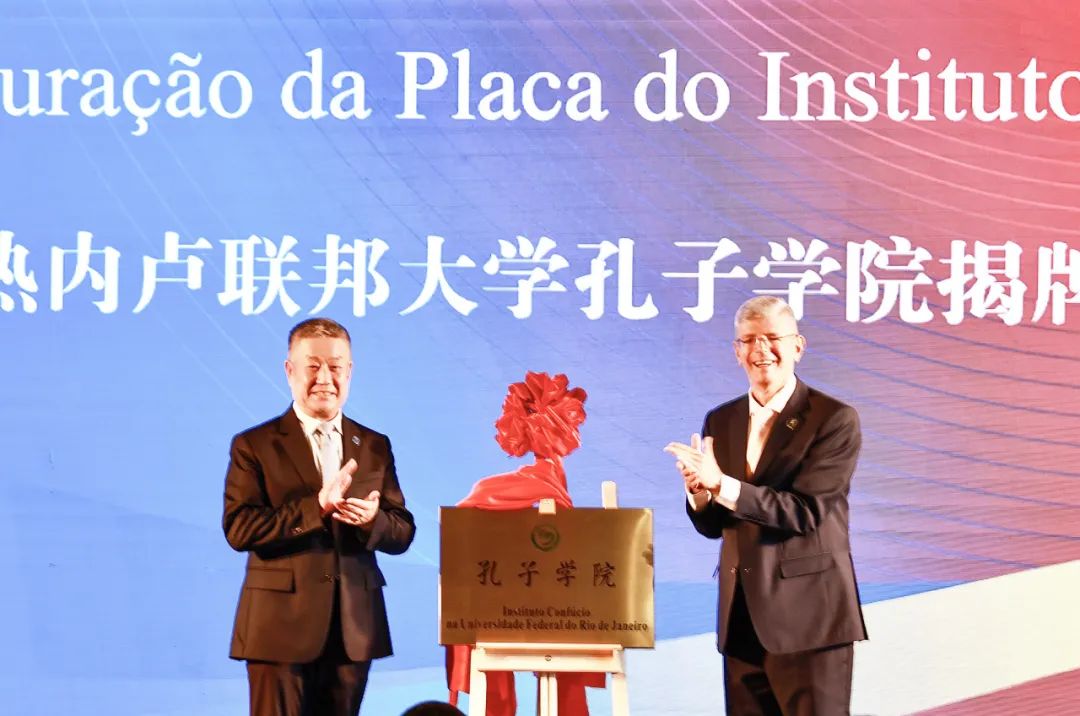Zhao Changlu and Roberto Medronho, Rector of UFRJ, signed a Memorandum of Understanding (MOU) on the joint establishment of BIIB. The attendees unveiled plaques for the Confucius Institute, the BIIB, and the China-Brazil Research Center for Mutual Learning of Civilizations.