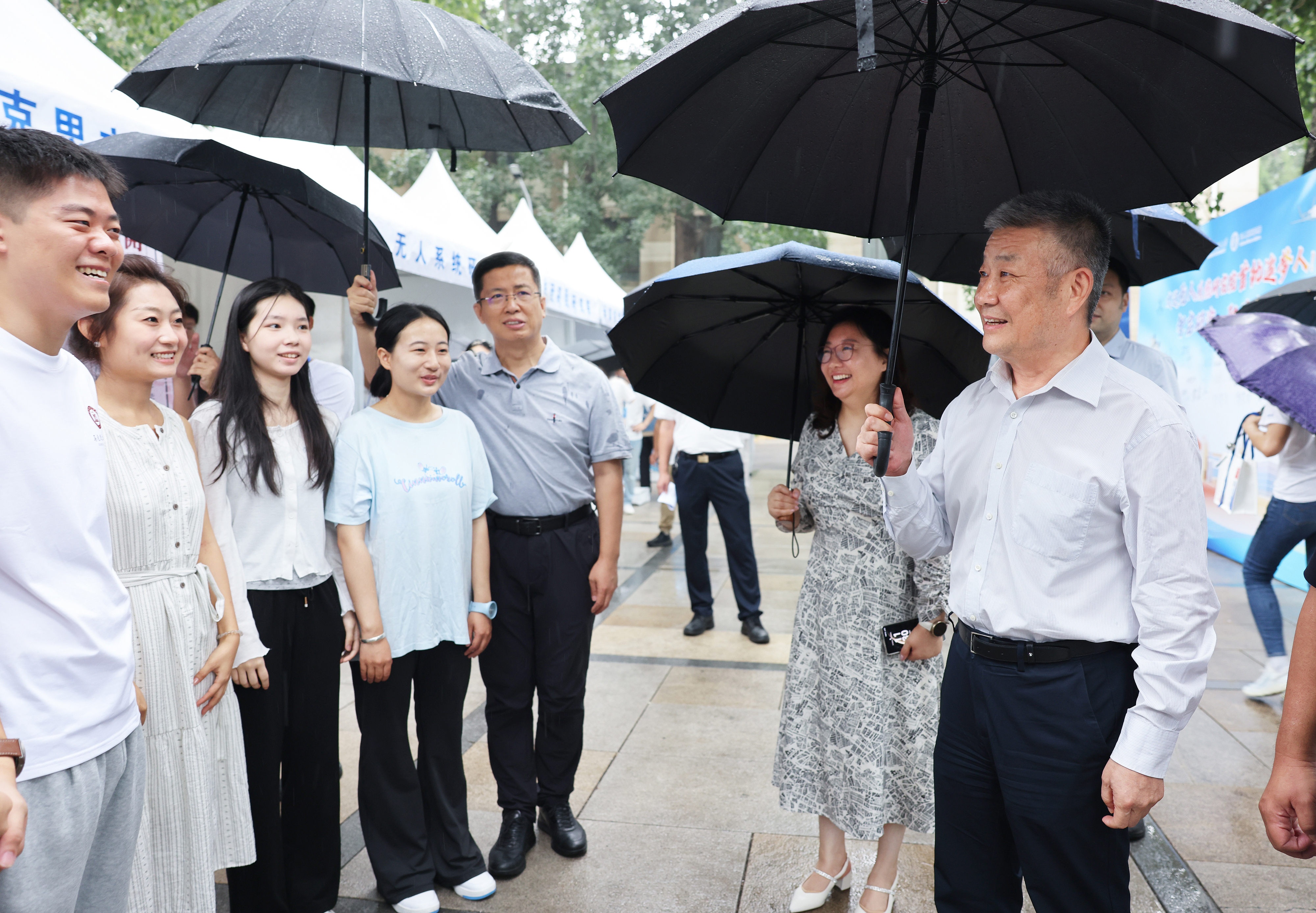 On September 5, Party Committee Secretary Zhao Changlu and Vice President Deng Yi visited the registration areas and expressed their gratitude to the faculty and student volunteers assisting with orientation activities. They also extended a heartfelt welcome to the new students, inquired about their research interests, and encouraged them to delve deeply into their research fields, serve the country through aerospace endeavors and pursue excellence.