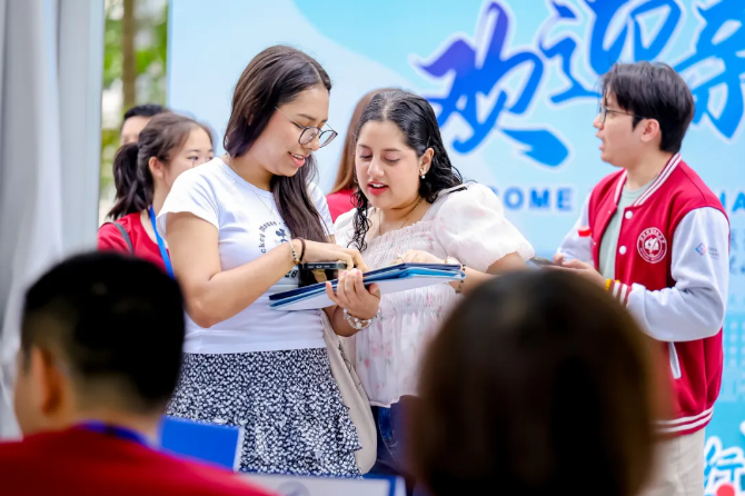 Various schools and colleges held distinctive welcome activities based on their characteristics. New students, together with the mascots, signed their names and took photos in front of the display boards, capturing their bright smiles and receiving distinctive welcome gifts.