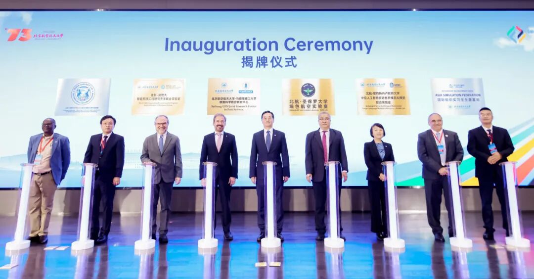During the event, Wang Yunpeng and guests jointly inaugurated six joint laboratories, including the Beihang-UPM Joint Research Center for Data Science, the Beihang-University of São Paulo Green Aviation Laboratory, the China-Latin America Joint Laboratory for AI Multilingual and Multimodal Model, the Beihang-University of Nairobi Joint Laboratory for BDS Engineering and Simulation Technology, the Beihang-Macao Polytechnic University Joint Laboratory for Intelligent Systems Engineering, and the Asian Simulation Alliance Internship Base. These entities will serve as physical platforms for resource sharing and collaborative innovation.