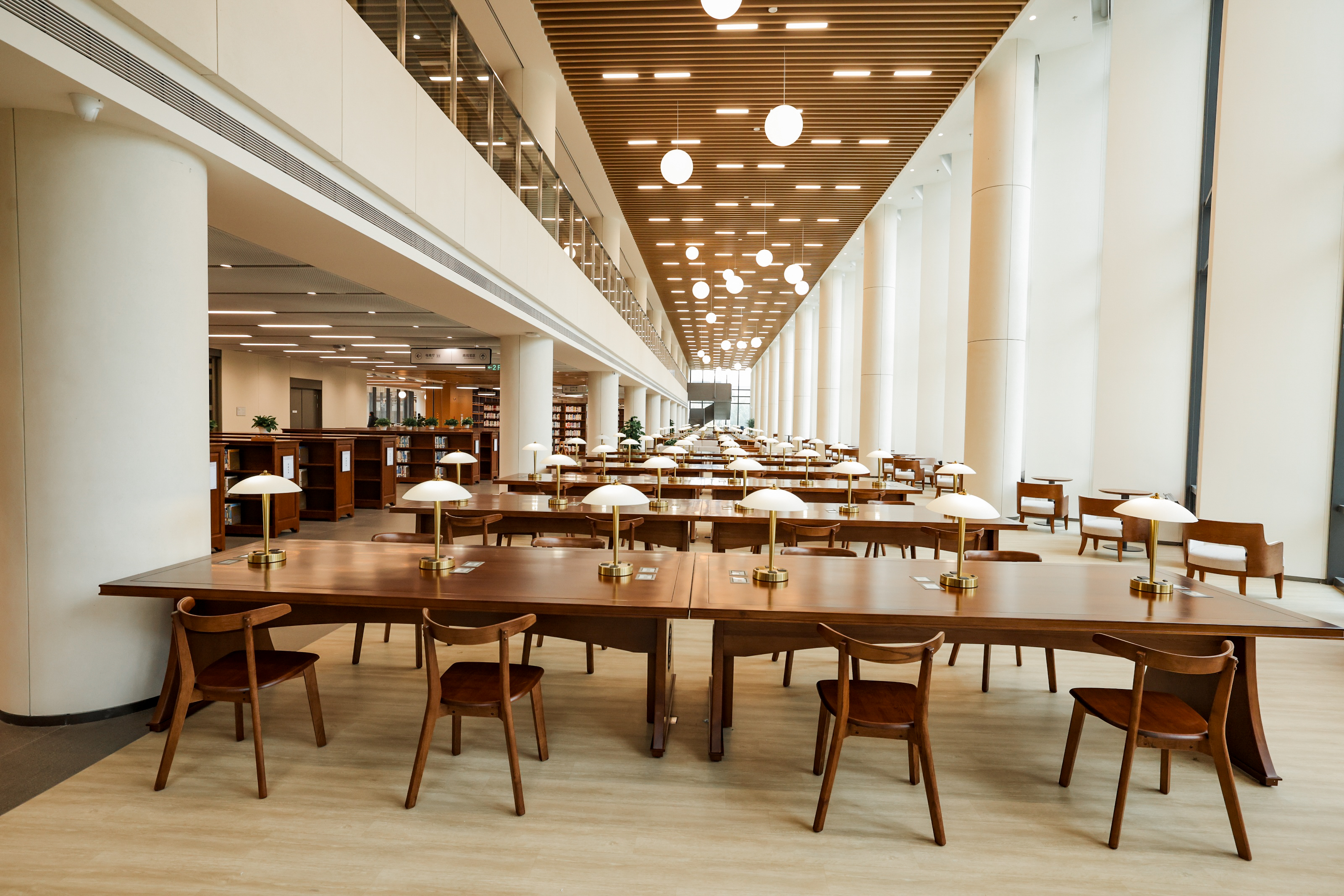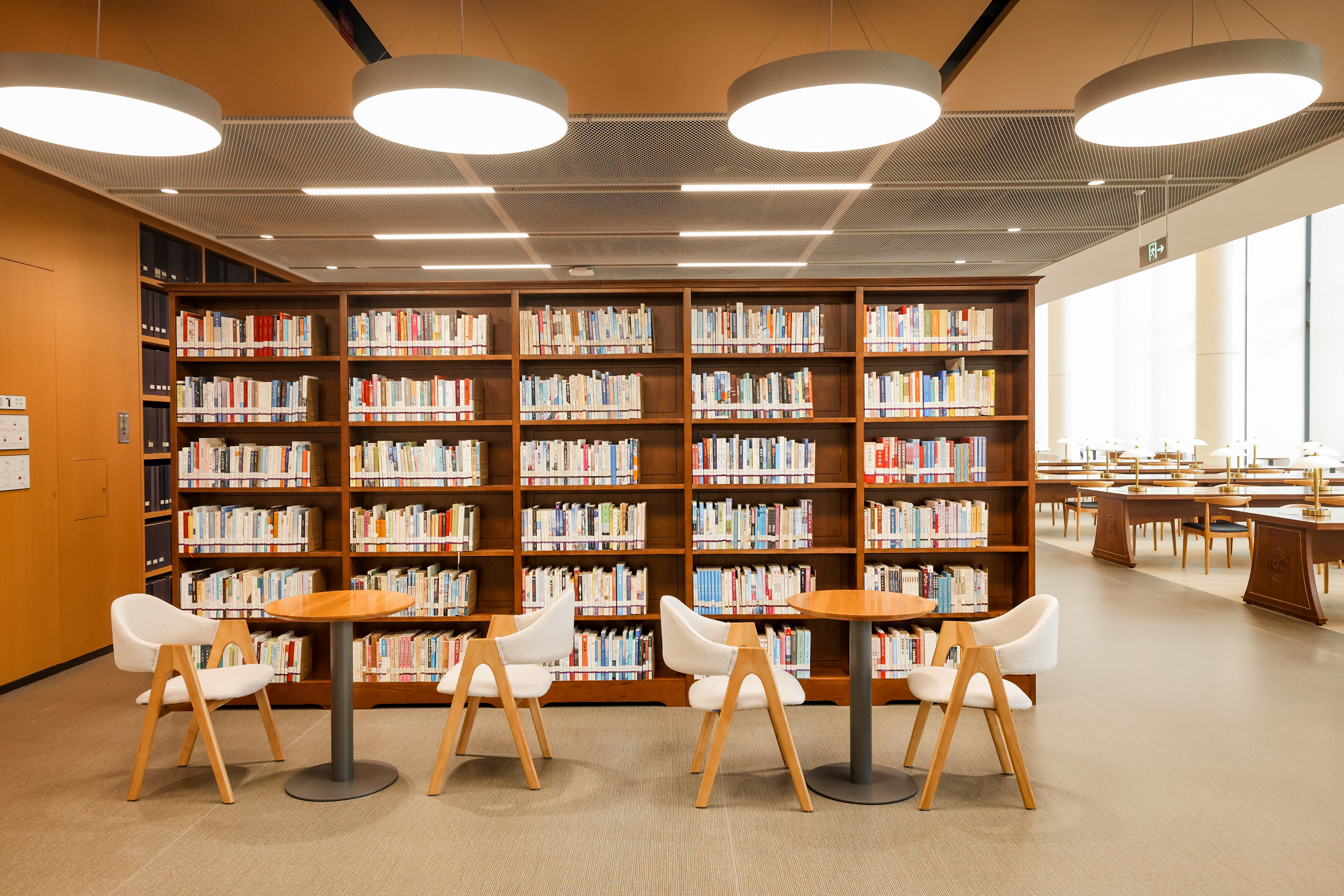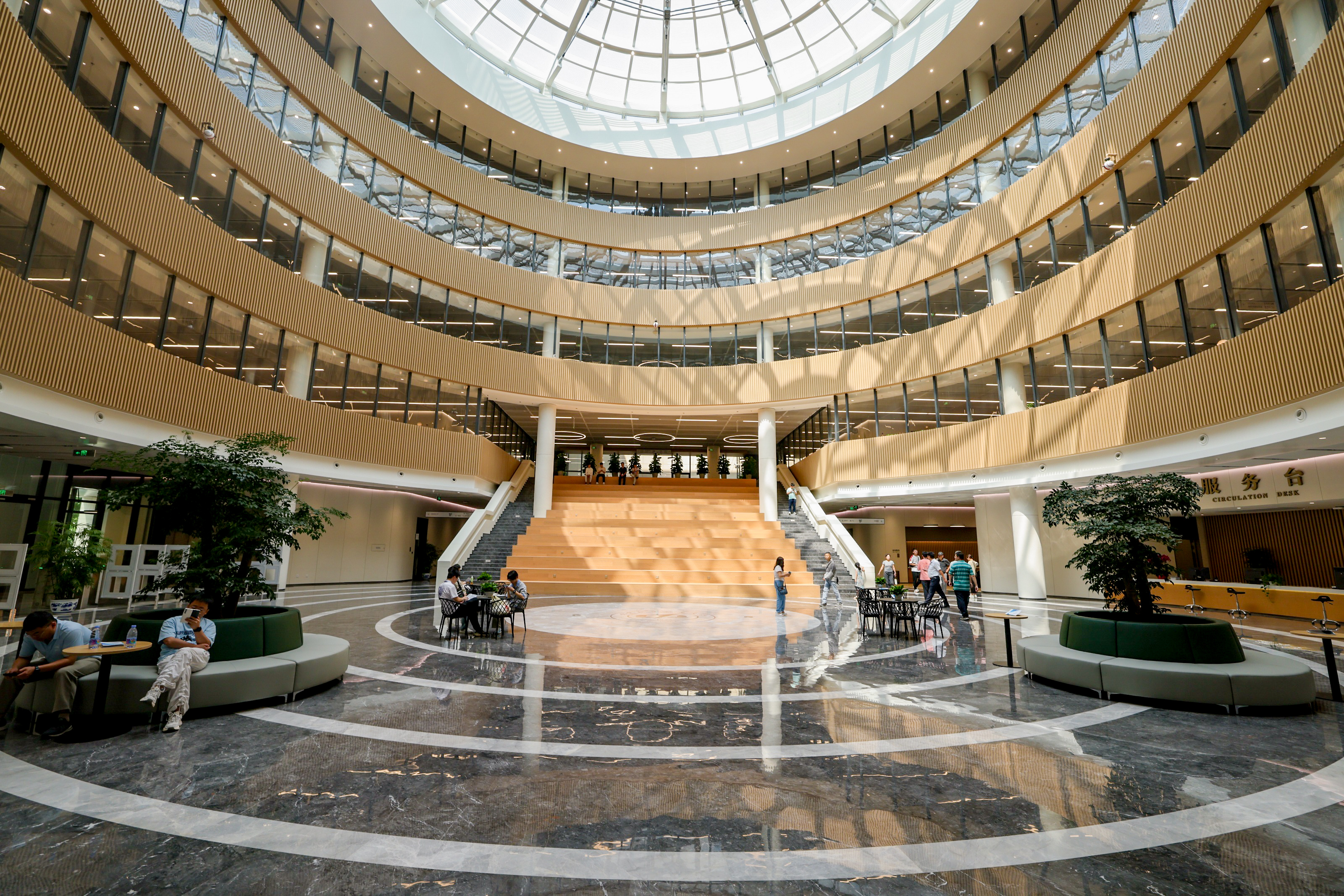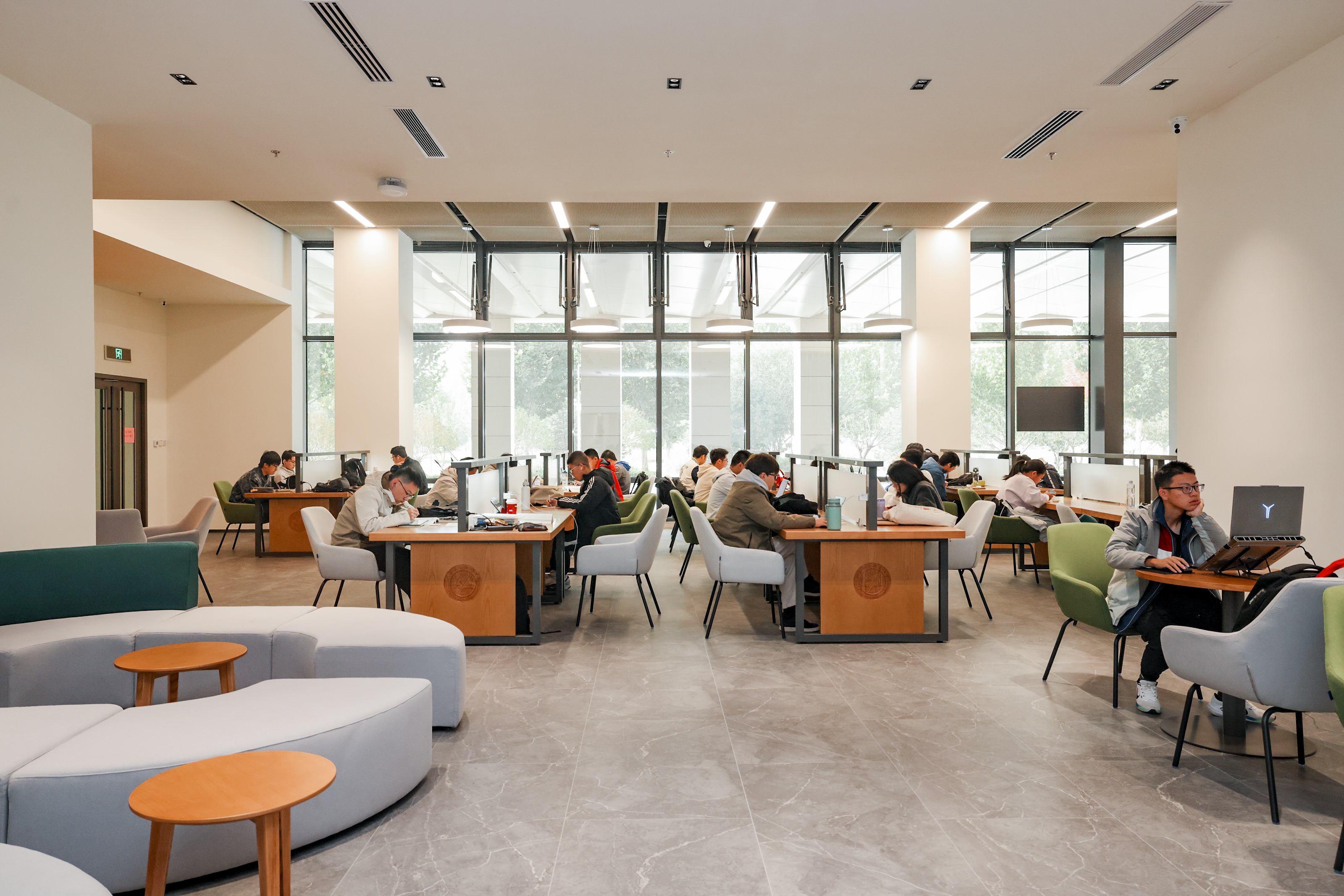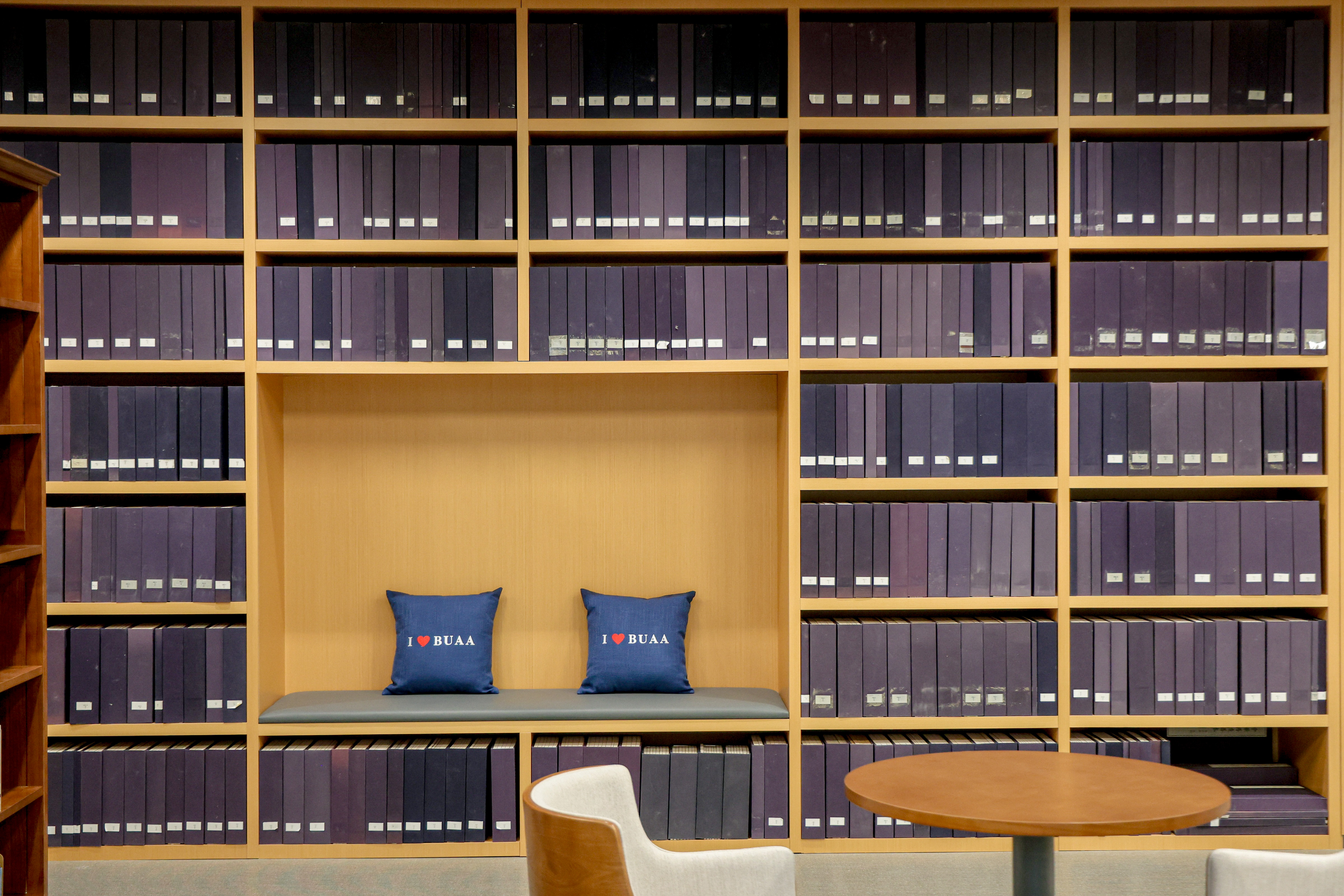 Centered on the spirit of "Serving the Nation through Aerospace Endeavors," the library has been built into a diversified functional service space integrating learning and reading, guidance and discussion, sharing and collaboration, social leisure, and academic exchange. It serves as a documentation center with distinctive aerospace features and a modern learning space. Standing 32 meters tall, the library has 6 above-ground floors and 2 underground floors. It is designed to hold 3 million volumes, including 700,000 open-shelf volumes and 2.3 million volumes in closed-stack storage. It also provides over 3,500 reading seats, creating a modern knowledge community for the university's faculty and students that integrates knowledge acquisition, cultural inheritance, academic exchange, and innovation incubation.