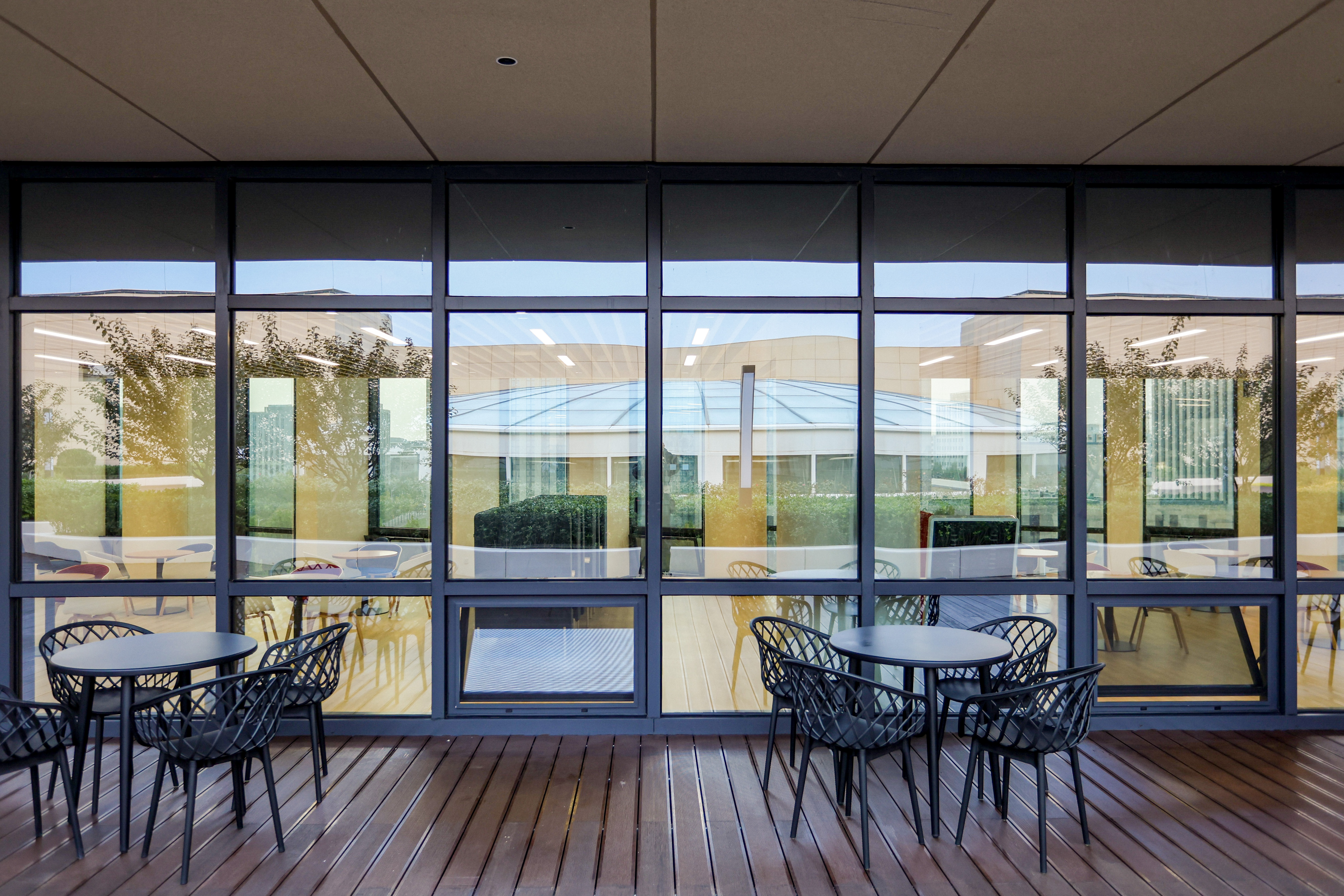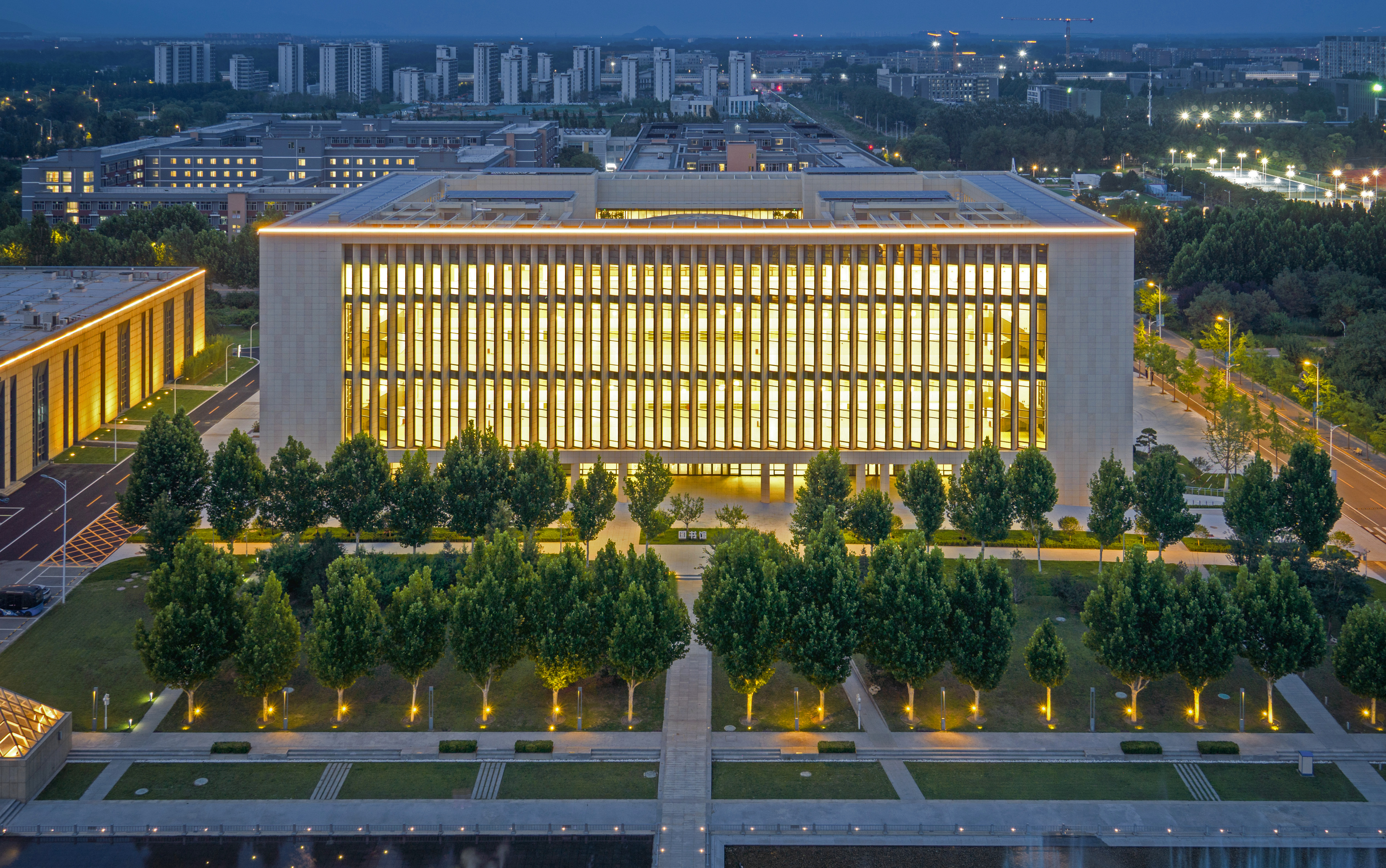 The Library of Shahe Campus commenced construction in March 2024, passed the final inspection ahead of schedule in July 2025, began trial operations for new students on August 30, 2025, and officially opened on October 24, 2025. This all-steel structure building also reflects the new "Beihang Speed." With a total construction area of 48,000 square meters and a site area of 13,000 square meters, the library is the first building primarily constructed with steel at the Shahe campus. The overall rectangular building features an ingenious facade design, echoing the Shahe Main Building from afar and integrating perfectly into the "The Realm of Sky" landscape system to jointly form a core campus landscape cluster.