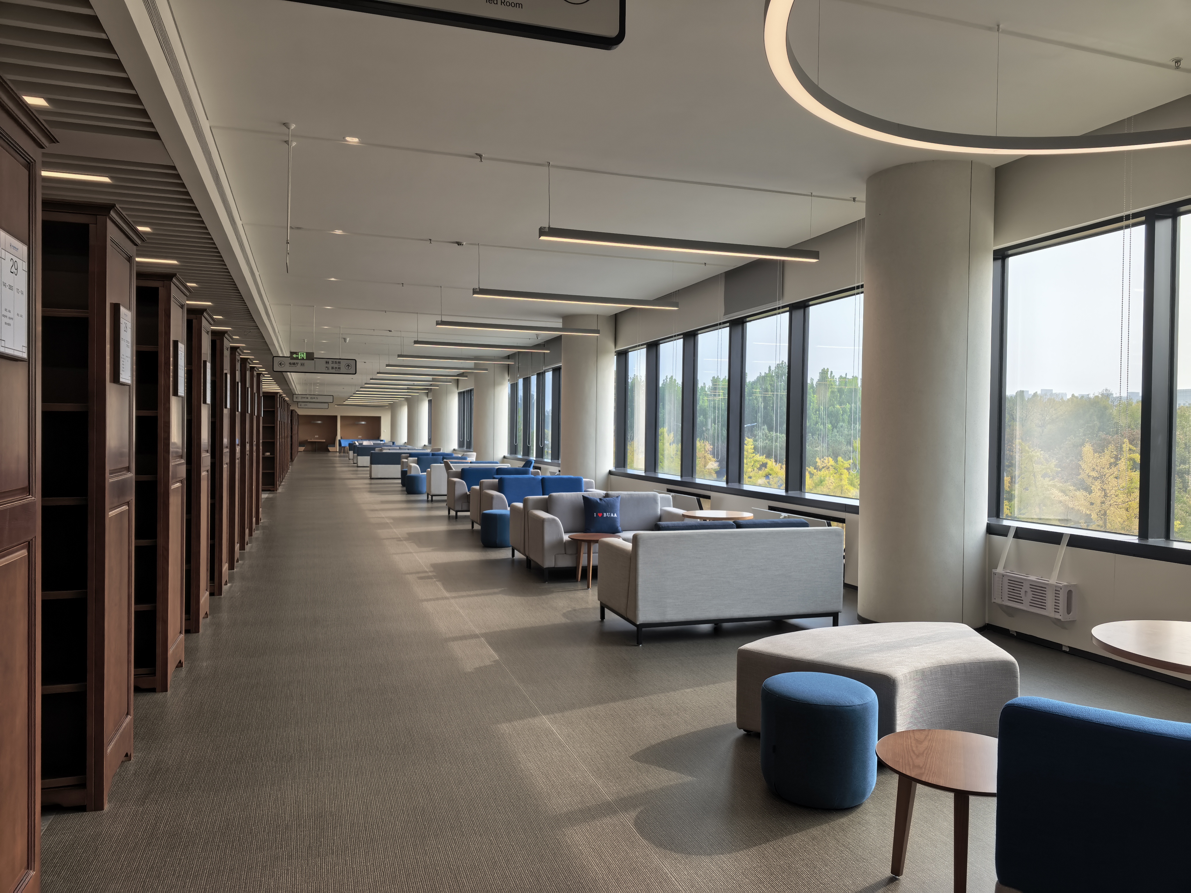The completion and opening of the Shahe Campus Library is a significant measure for the university to improve educational facilities, optimize educational environment, and empower future development. As a new university cultural landmark bearing the mission of knowledge inheritance and innovation, it will inject new vitality into the dual-core development of the two campuses in Beijing and provide stronger support for faculty and student teaching, scientific research, and personal growth.