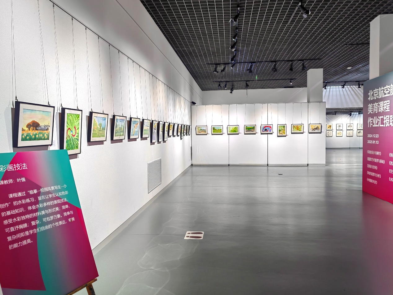 The 2024 Beihang University Aesthetic Education Courses Excellent Homework Joint Exhibition is currently being showcased at the Beihang Art Gallery. The exhibition features a diverse array of works, including paintings, posters, and videos from more than 200 students.