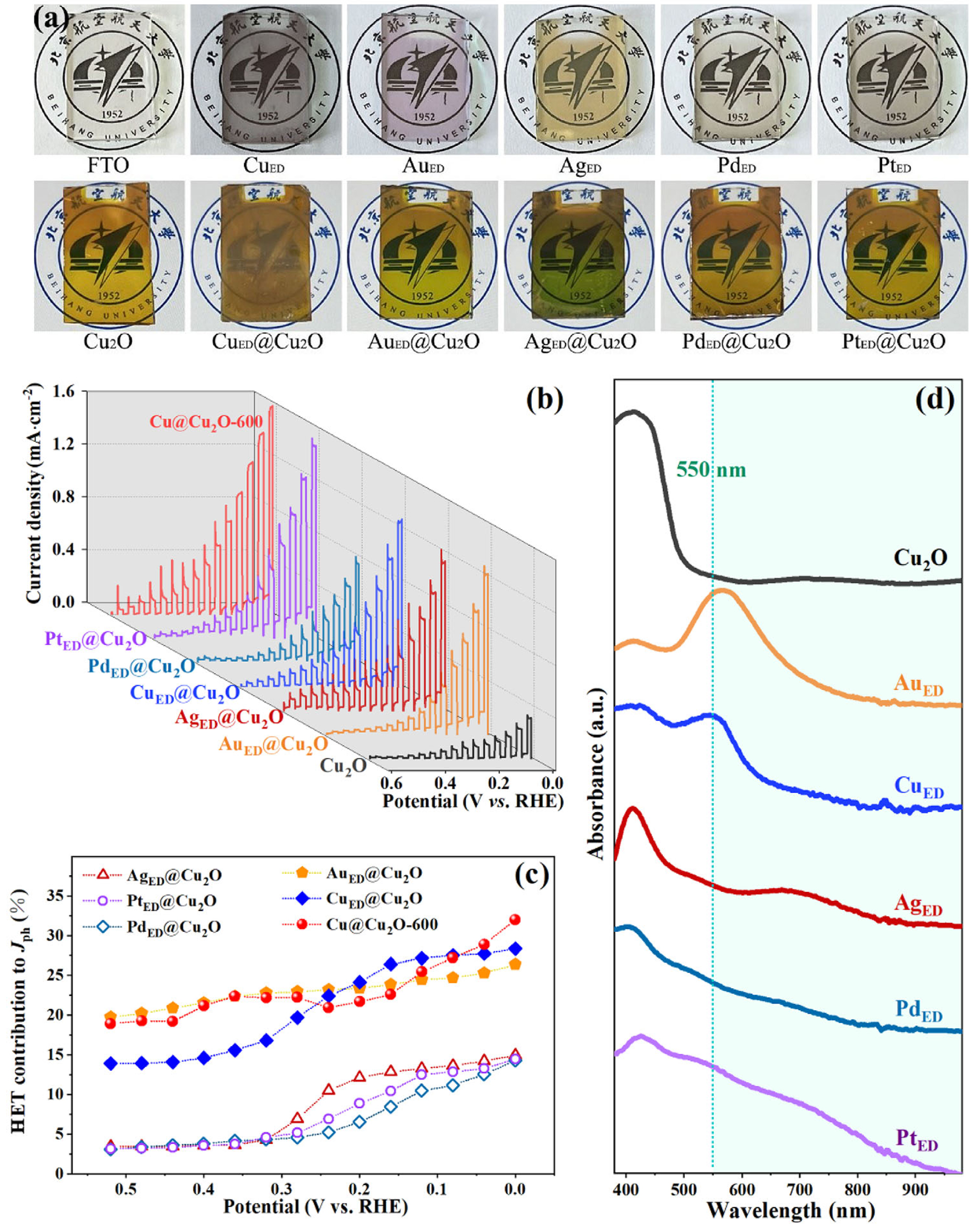 Professor Peng Diao’s research team from the School of Materials Science and Engineering at Beihang University has made significant progress in understanding the enhancement of photoelectrocatalytic (PEC) performance through localized surface plasmon resonance (LSPR). Their findings were published in the prestigious journal Advanced Materials under the title “Quantifying Localized Surface Plasmon Resonance Induced Enhancement on Metal@Cu2O Composites for Photoelectrochemical Water Splitting.”