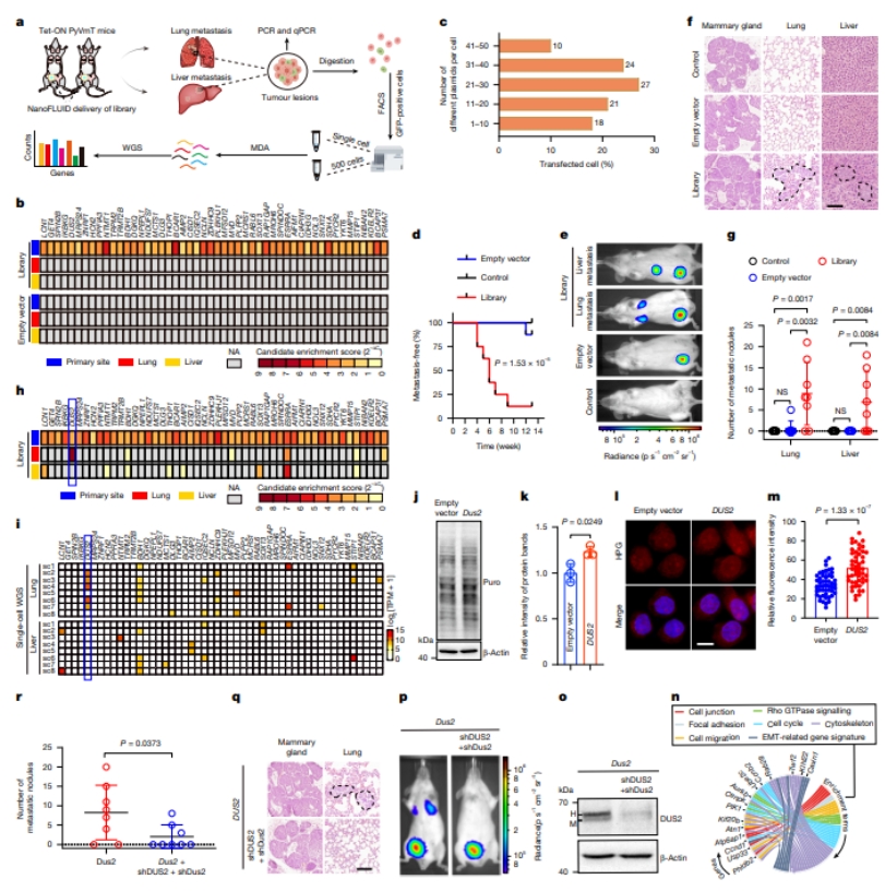 Fig. 3: Screening of breast cancer metastasis-driver genes through NanoFLUID-mediated delivery of a gene library