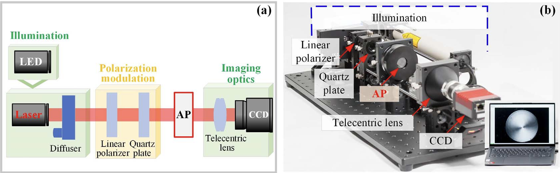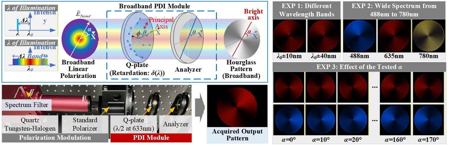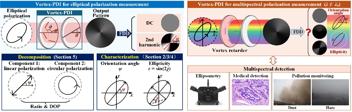 Figure 4. (a). Principle of Vortex-PDI in elliptical polarization; (b). Vortex-PDI for multi-spectral polarization measurement