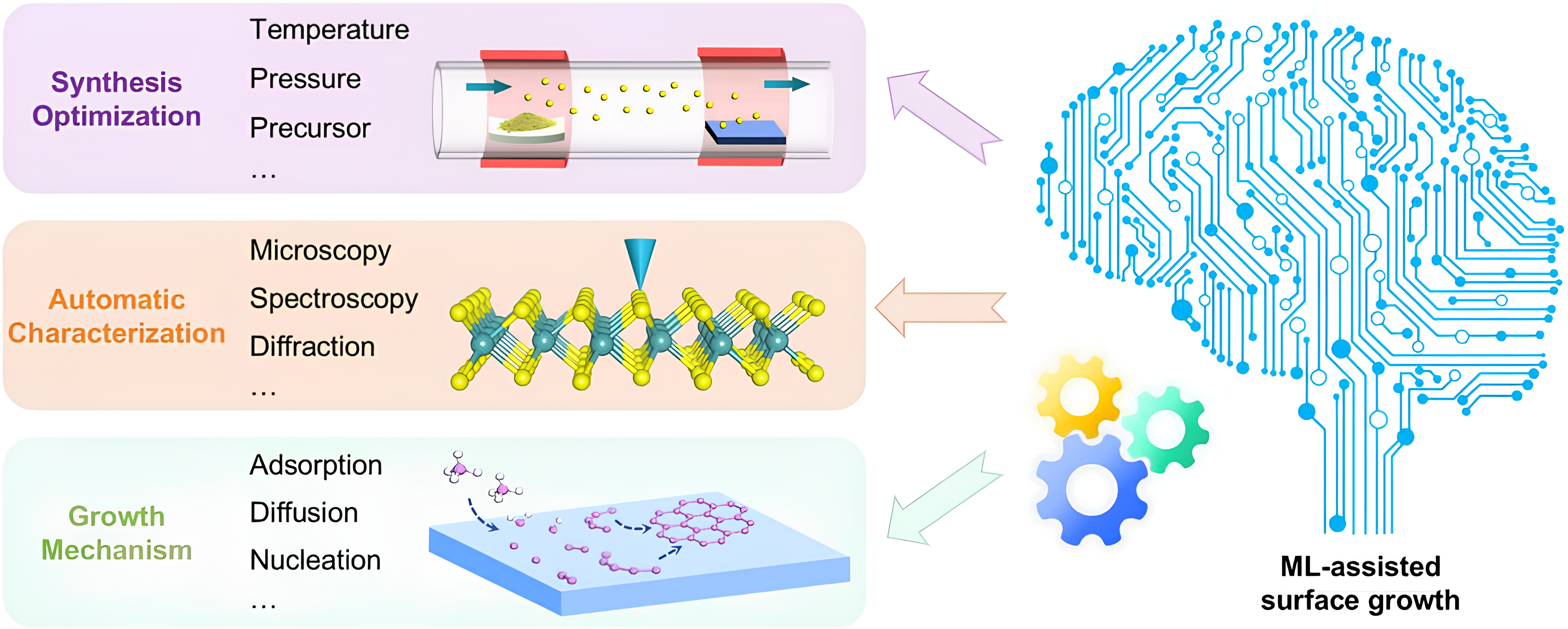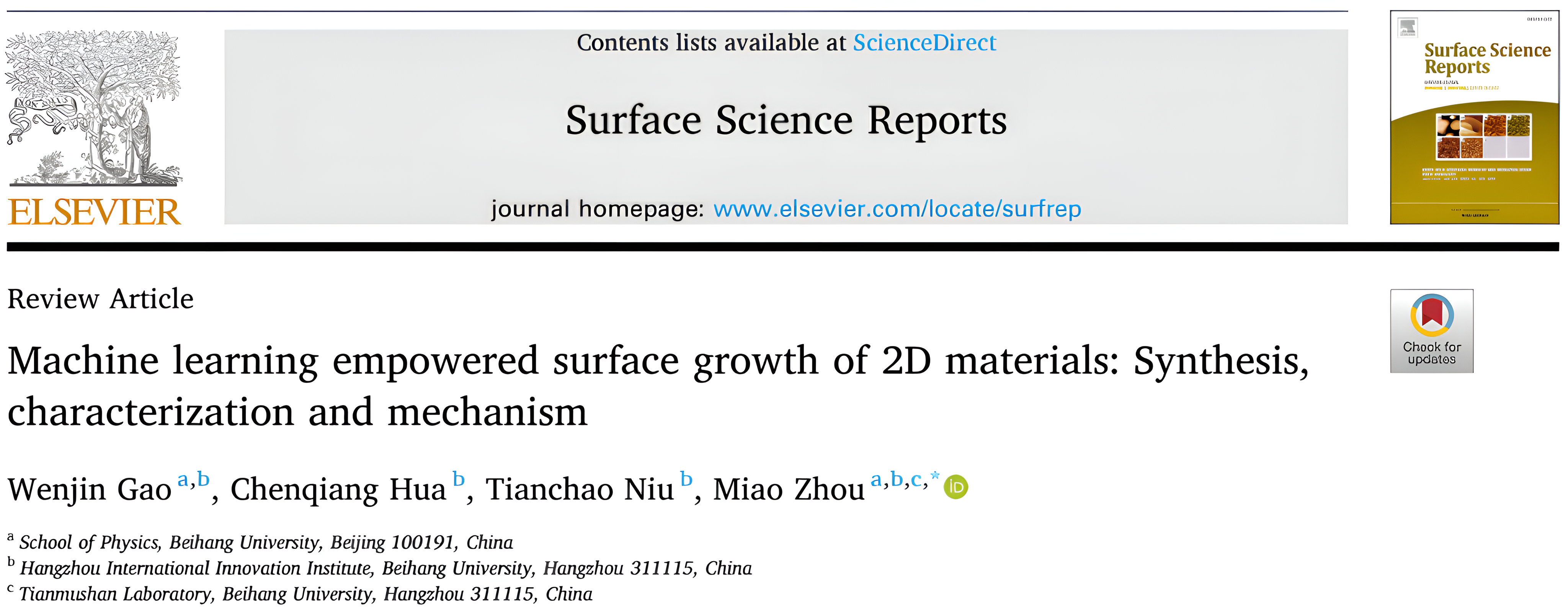 A review article titled "Machine learning empowered surface growth of 2D materials: Synthesis, characterization and mechanism" by Professor Zhou Miao's team from the School of Physics at Beihang University has been published online in Surface Science Reports, a leading review journal in the field of surface science.