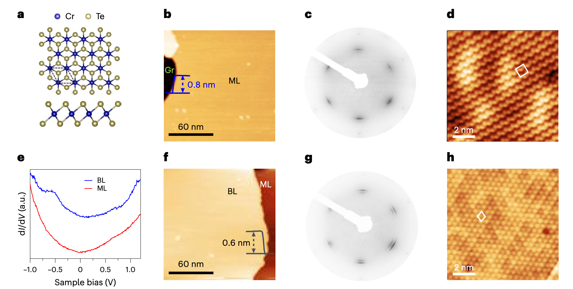 Fig. 1: Atomic-scale structural and electronic characterization of monolayer and bilayer CrTe2