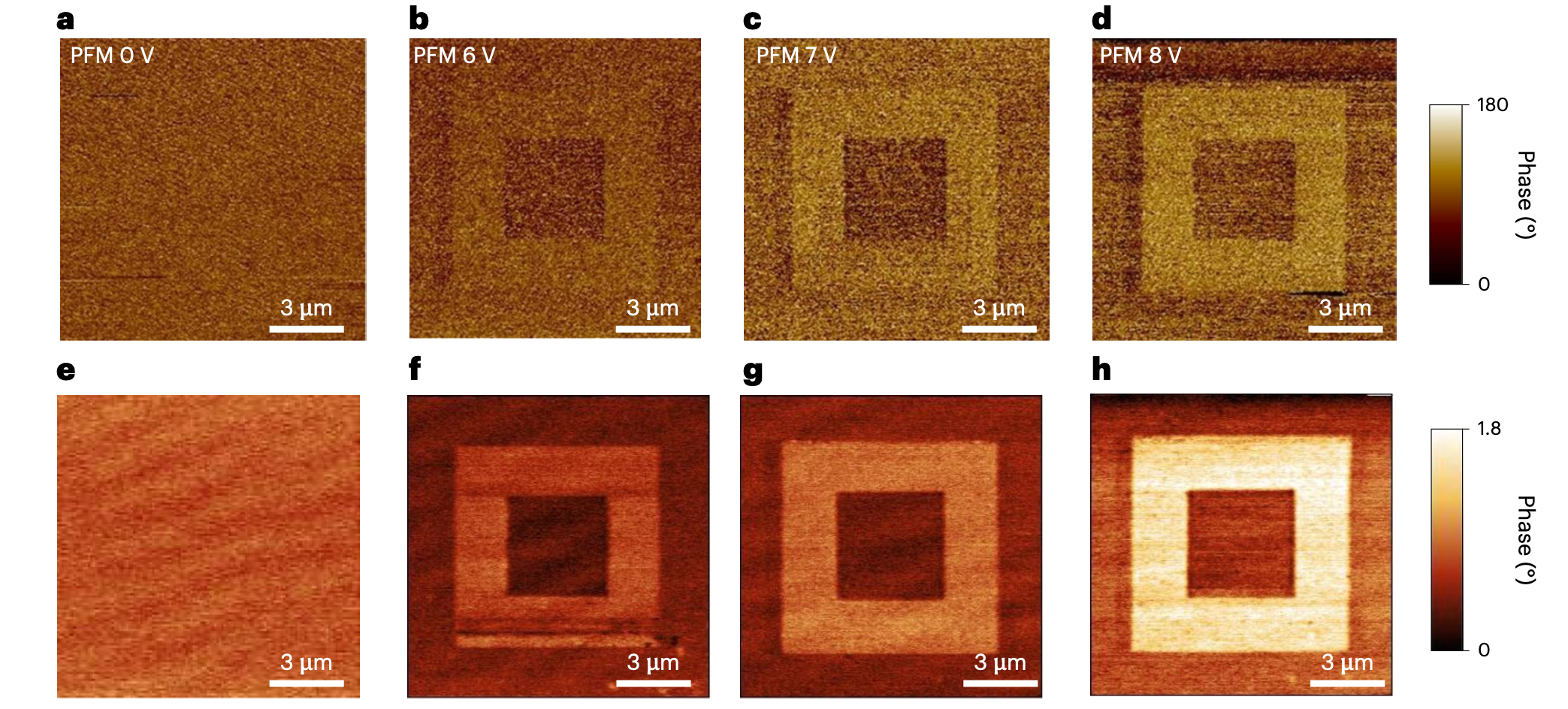 Fig. 3: Electrical writing by PFM and magnetic reading by MFM for multiferroic bilayer CrTe2